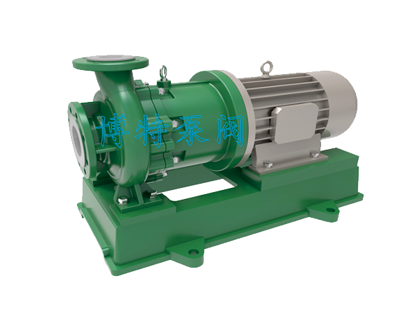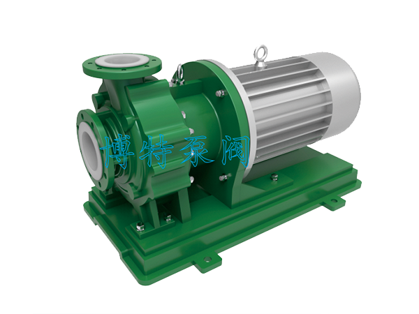 工作原理:氟塑料磁力泵由泵、磁力傳動器、電動機三部分組成。關鍵部件磁力傳動器由外磁轉子、內磁轉子及不導磁的隔離套組成。當電動機帶動外磁轉子旋轉時,磁場能穿透空氣隙和非磁性物質,帶動與葉輪相連的內磁轉子作同步旋轉,實現(xiàn)動力的無接觸傳遞,將動密封轉化為靜密封。由于泵軸、內磁轉子被泵體、隔離套完全封閉,從而徹底解決了“跑......